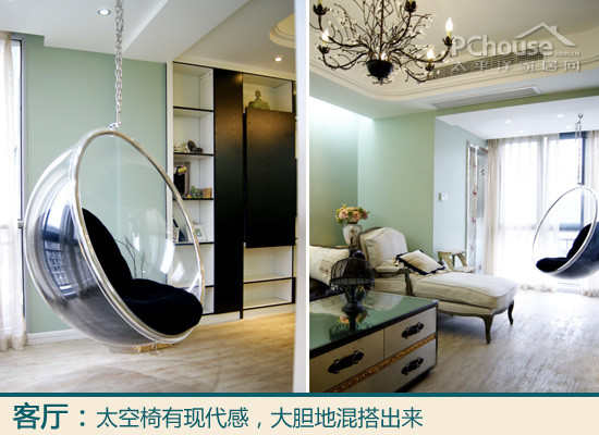 我喜欢的设计:双阳台的使用是这样的,一边纳入客厅,一边在洗衣房,客厅这边的阳台弄了个太空椅,好特别,孩子和客人都特爱坐上去玩。阳光的午后,躲在太空椅看书,想一想都觉得很惬意。