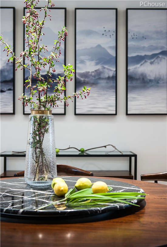 这套中航樾府的设计是我们全托管的,从前期的硬装改造到后期的软装设计,包括家具、地毯、挂画定制等,而在软装中很多细小的摆件,小到纸巾盒,都是我们精心搭配和挑选,