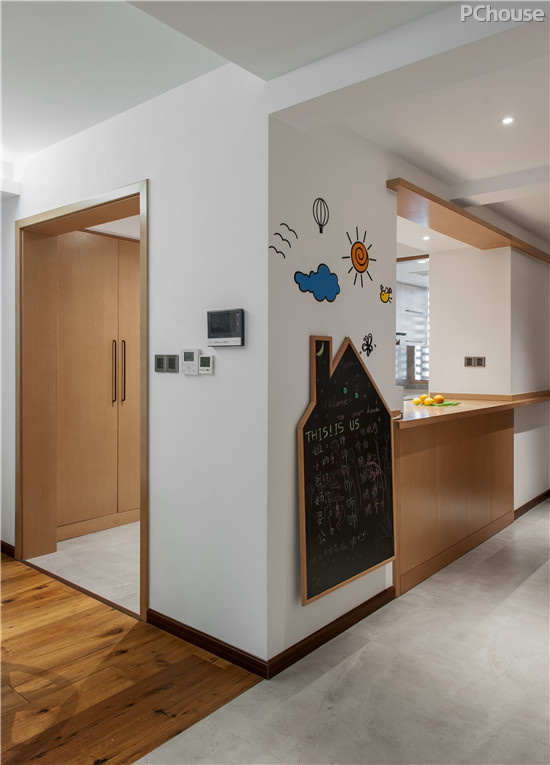 向厨房看去空间的纵深感,这个家看上去更有“胸襟”,一个更具有包容性的家,让家人多了欢乐的时光。