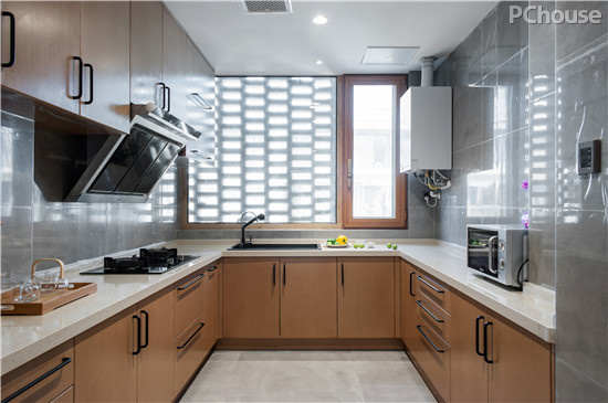 厨房是中西合并的,里面是中厨,外面是西厨。设计成U型厨房,不仅储物多,操作方便,而且是主人妈妈的私人领地,很多东西的摆放都是她平日的习惯,很大,很干净还好打理。