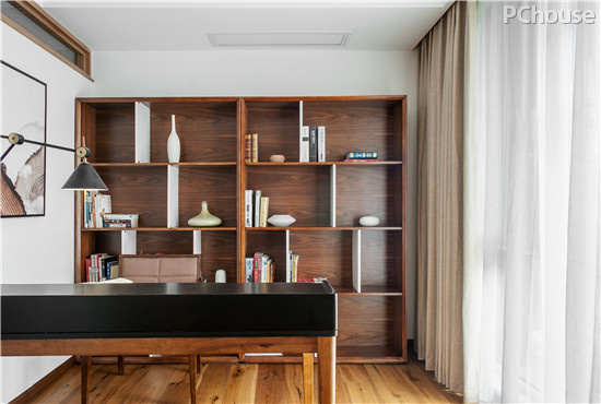 书房是和主卧室同处在一个空间,与浴室一墙之隔,与主卧相对,套间的形式,让主卧室变得完整。