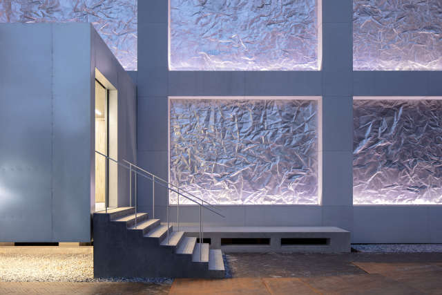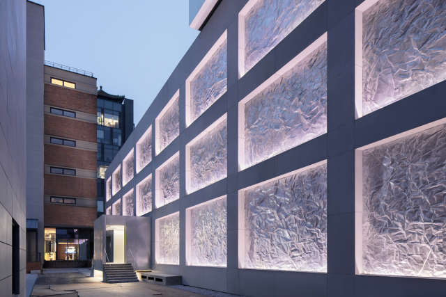 隆福寺木木美术馆这一项目,很多材料都是团队设计师亲手制作与施工的。最令人惊叹的莫过于拆除掉原有的窗户后,加入了折出不同图案与凹凸形状的镀锌钢板。这种看上去又酷感同时又充满温度的方式,让一座老建筑焕发生机充满活力。