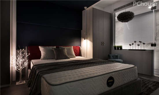 私领域有如量体向下蔓延的分枝,吸收主体精神后生长出各自样貌。走进卧房,大片帷幕筛进光线为棕黑场景添暖;譬如在阳光中午睡,场域依循光的进程次序安排淋浴间、休憩区与卧床区块,由明至暗的有机规划,将沉淀许久的睡意酝酿成梦。值得一提的是中央休憩地带,是透过天幕落差配合壁柜定位形塑分界,再点缀云朵吊灯、窗台迷你植栽及鸟型饰件,暗中扣合量体的自然主题,并衍生出宛如向光生长的梦中卧房。