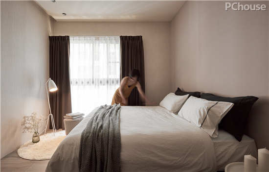 主卧室回归静谧本质,设计师去除不必要的缀饰语言,仅保留一扇窗景与柔软卧床,为昼夜睡意暖脚铺床。