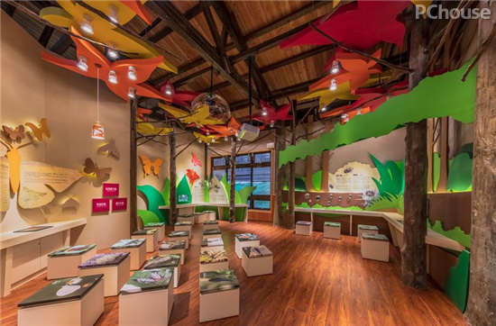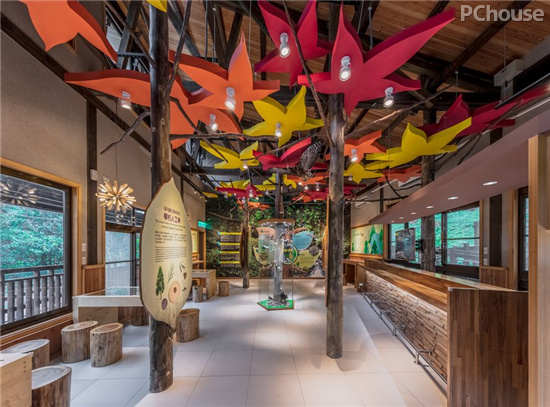 【太平洋家居网 设计频道】量体位于北台湾郊区的满月圆国家森林游乐区内,由满月圆山、北插天山、东眼山等山群环绕,而依傍着的瀑布溪流,也带来极具生命力的生态图景。士耕设计 专案主持人 林华章先生 与执行团队撷取天然灵感,以三座木造房屋为核心,在观察基地环境后,提炼出「蝴蝶馆」、「森林馆」及「溪流馆」三大主线;并栽取落叶溪水等天然意象,料理成色泽饱满的欢乐童趣装置,搭配互动式学习机具,使两者在精心安排的灯光投射中,替森林率先展翼承接大小朋友们的轻快步伐,为园区打造迎接各方游人的趣味旅游简报中心。