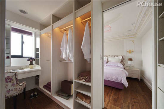 主卧更衣间是设计师为女屋主所打造的独享天地,并保有梳妆过程的隐私。