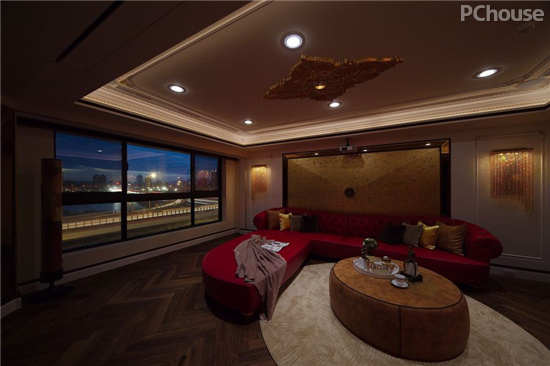 Yocico了解过往长期居住透天厝的屋主夫妇,期望能免除密集式公寓的压迫感,因此在公领域采用全开放的通透设计,并大面积铺排黄棕及暖红主调,辅以大幅窗扇接壤河岸,献上暖光流淌的自然礼赞。