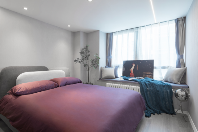 玻璃幕墙通电切换过程中卧室呈现的不同效果
