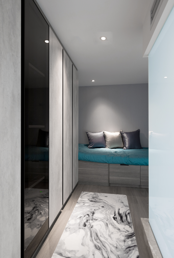 设计师顾浩巧妙的将固化的常规墙体抽离出来,大量运用透光玻璃,予人轻盈灵动的视觉观感,折射着现代时尚的优雅格调,成为本项目改造梁志天大师作品的点睛之笔。