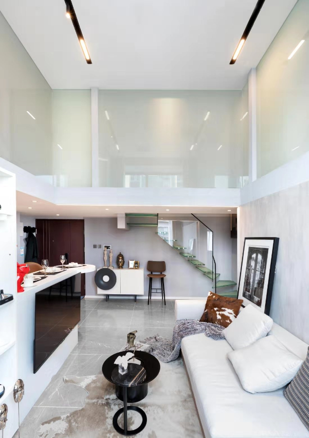 玻璃幕墙通电切换过程中客厅呈现的不同效果