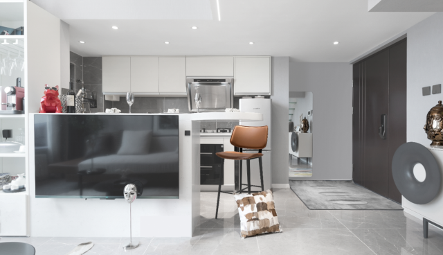开放式的厨房搭配吧台,既节省了空间,又使得空间富于韵律感,不论是桌椅还是小的装饰摆件,每一处都经过细心的布置。这让空间更有灵魂更加纯粹,也使得家更具有艺术性。