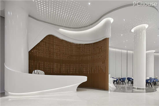 水元素的语言被延伸至空间各处。等候区低调的陈设布局与艺术语汇,将水珠共凝的场景诗意化描绘,其间跃动的韵律在一片宁静的画面中流露出有温度的情愫,凝练出灵动而独特的空间气质。