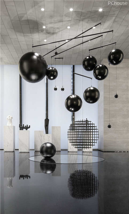 各类当代艺术品在精琢的灯光设计点衬下,演绎一场关于艺术的对话,引向对艺术精神的探知。黑白撞色、线条感、动静相宜、抽象与写实、艺术与人文……多种设计语言与灵感奇思碰撞、相映、融汇,寻觅艺术优雅与生活日常之间的平衡与共通感,予人纯粹至深的情感体验。
