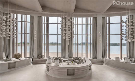 柔软和长久,常伴长生,凡水流之处,必留下痕迹。设计师试图用具象化的空间装饰,探索抽象而哲学化的概念——轻盈流淌、瞬息万变的水的另一重面相:侵蚀,并将时间保存下来。