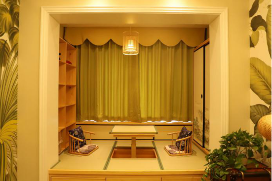 其次,李继华更在各个空间大胆融入大量植物花卉的墙布,在茶室,更是以此为主题。在暖意的灯光投射下,仿佛置身温暖丛林,在花团锦簇间,透露属于空间主人的个性品味。配合日式榻榻米的气氛渲染,打造与自然和谐共处的茶艺环境,边品茶,边感受自然之美,感悟生活之味。