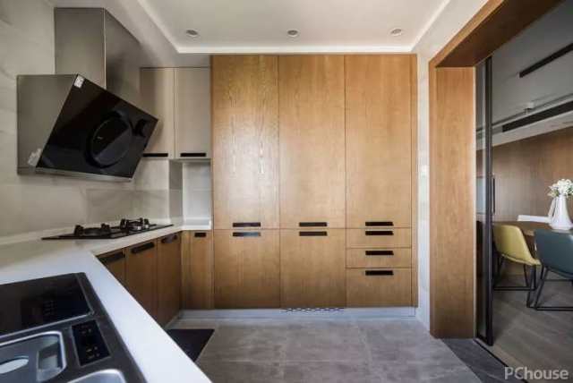超大的厨房储物空间,也很好地解决了遮挡光线的问题。