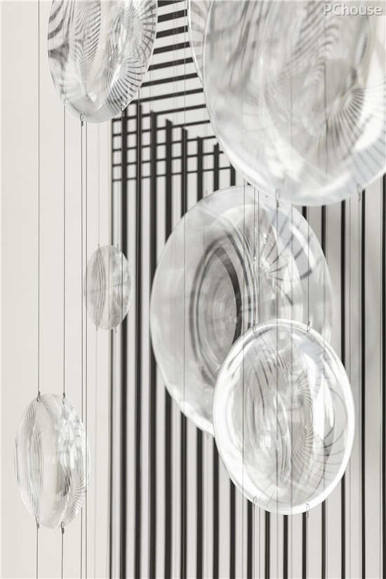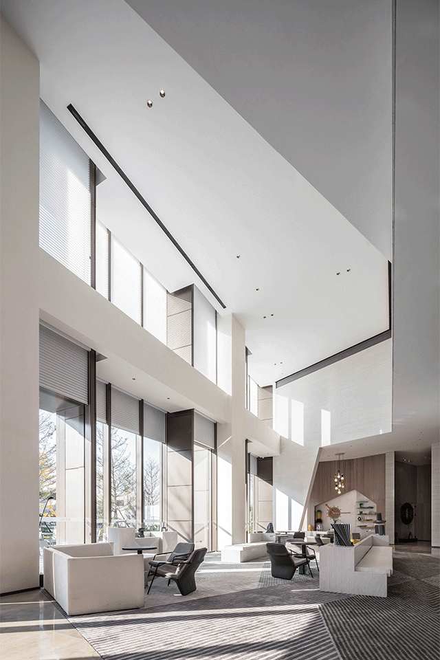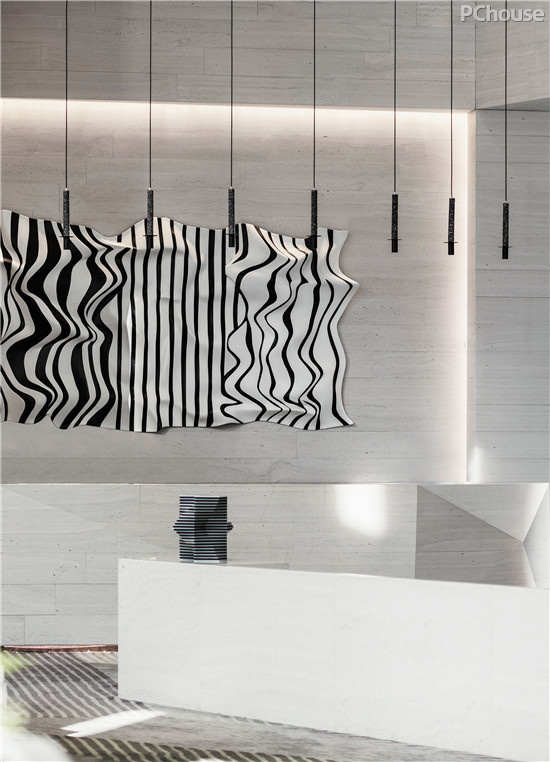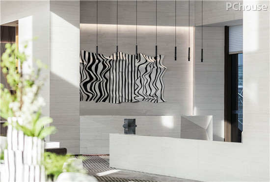 线性的蔓延与组合,让空间充满更多的艺术感知。黑与白,如光如尘,二者可与世间万物相合,不自利异。就如人与环境自然相互结合,不刻意去设计出装饰符号,在表达与克制之间的决策,都交由此刻站在它面前的人,而当线条形态以大面积或者艺术造型依次出现的时候,便丰富了建筑的内在层次,实现了室内节奏、韵律、情感的统一。