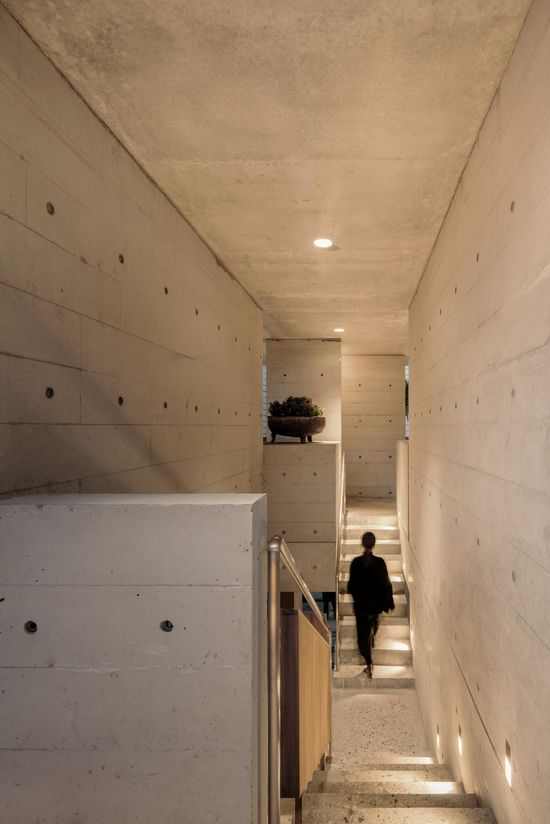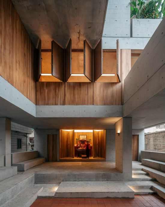 一个房子里要兼并公共和私密两个空间属性,对设计师来说,这无疑是一大挑战。而如此复杂的功能,原有的房屋空间也无法消化,在和蔡家商量之后,将房屋进行拆除重建。出于是公共项目的考虑,设计师使用了清水混凝土的建造方式,既保证建筑的坚固性,更能在肌理上回归当地传统的石头建筑。