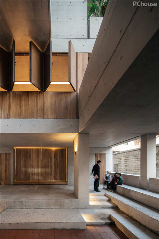 按照设计师的计划,建筑的一层以一个半开放式的文化讲堂为主,既作为讲堂,更像一个小小的下沉式广场,能够让邻里的老人和孩子们在此乘凉玩耍。