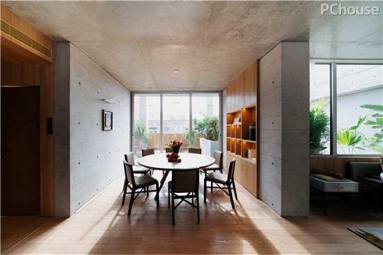 由于蔡家处在在密密麻麻的“握手楼”中间地带,采光问题很严重。为此,设计师特别要求在三层区域安装了大面积的落地窗,充分改善了采光不足的问题。为了界定公共、私密两个区域,也特别为建筑规划了两套立体交通体系。