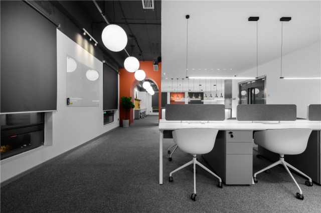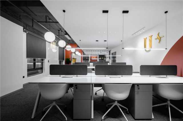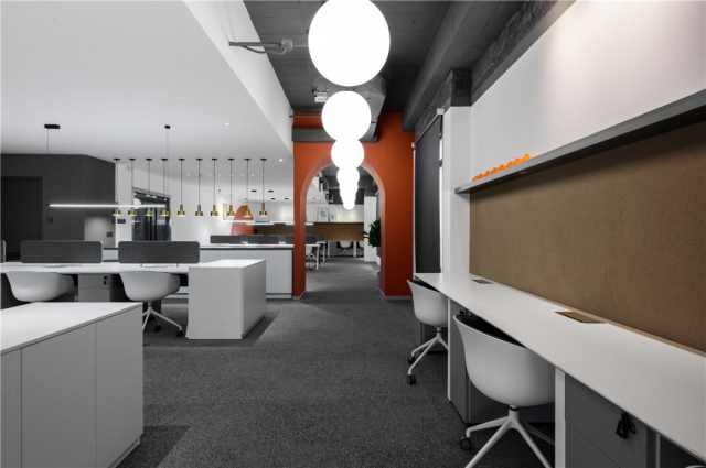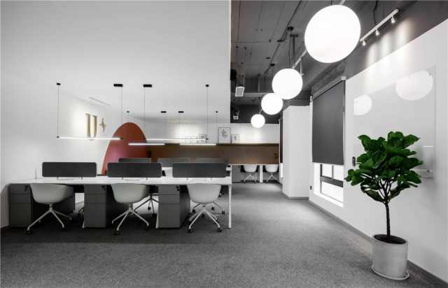 灯光是室内设计的灵魂,在灯光处理上,我们将氛围照明和局部照明相结合。整体空间的照度控制在100-200勒克斯之间,用局部照明把办公桌部分提亮。在灯具的选择上,使用防眩目的光源,色温控制在4000K。这样,大家长时间待在这个空间中,眼睛也会很舒服,加班就更有精神。