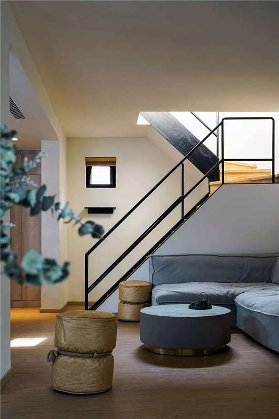 这块土地是当地一块工业废弃遗址,原先是水泥厂,建筑的整体外扩以两层包围的形式来完成。大堂以下沉式会客区的形式呈现,不仅在视觉上拔高了大厅的层高,也使得一楼的各个功能区分更为立体。