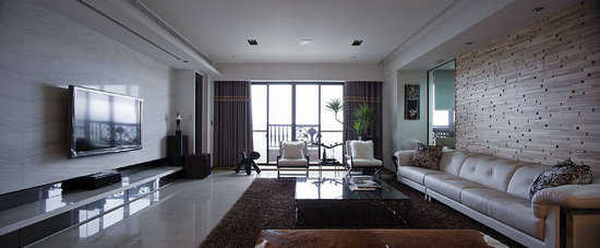 编辑点评:内嵌电视的手法,在视觉上几乎要让电视融入于黑色钢琴烤漆之中,设计师强调运用无手把的柜面设计,搭配适当的材质,就能跳脱传统柜子的形式,将收纳空间完美隐藏。