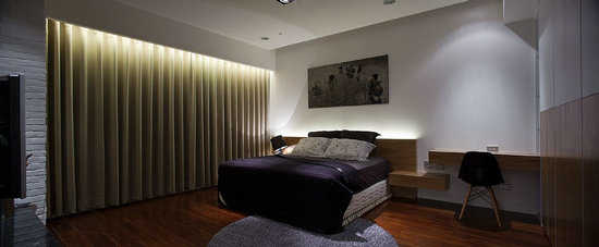 编辑点评:在喜爱实木质感的主卧房里,一反长男房的比重分配,设计师让层次分明的的深浅集层实木满布。