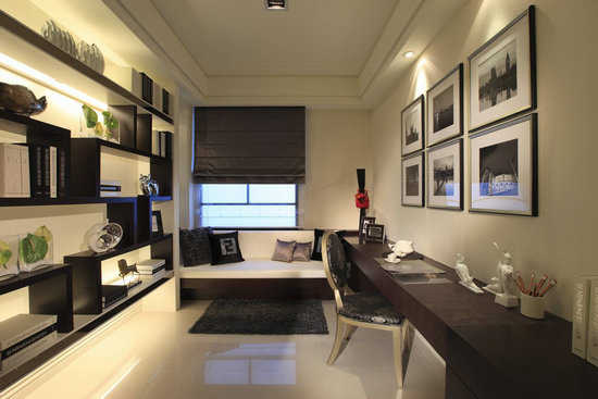 编辑点评:书桌到床座一致性的延伸,加以间接光源营造轻盈视感。