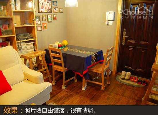 解释:餐厅其中一面墙自由弄成了照片墙,一家子吃饭时还能看到生活照,乐也融融。