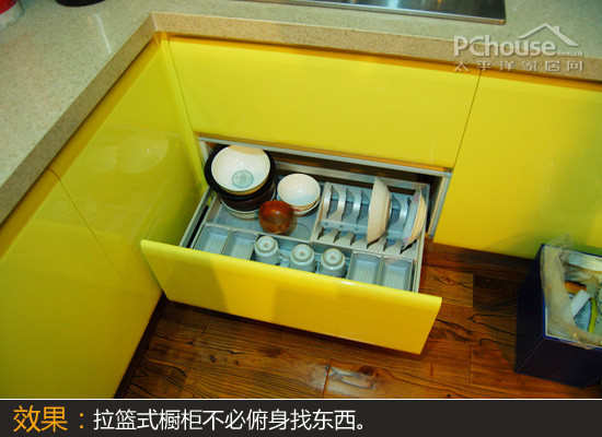豆妈问:旧房子那里的橱柜经常要我俯身找东西找得好辛苦,能不能在新房子改善一下?