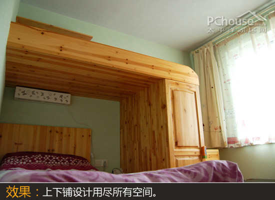 解释:豆豆房间是T字形的高低铺设计,下铺竖着,上铺横着。