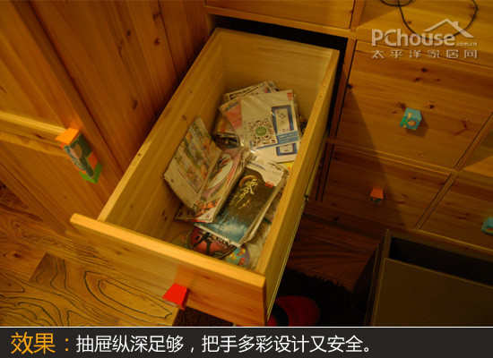 解释:柜子纵深很深,儿童专用把手设计得很贴心。