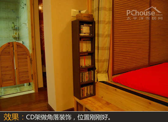 解释:台阶左侧有直立的CD架,收藏了豆爸喜爱的唱片和游戏盘。