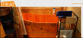 解释:浴桶上方的两个墙角放了小铁架,放置洗漱用品、挂挂毛巾和换洗的衣物。