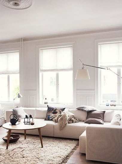 客厅尽头的窗户带来了无限的光线和灿烂的阳光,很好的将客厅整体氛围都变的非常通透。白色简洁的墙面以及沙发之类的家具搭配都没有占据过多的空间,让视线一下子就开阔了很多。