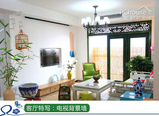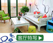 客厅特写:客厅是中式风格体现最充分的地方,莲花灯、青花瓷、中式风格的凳子、罗汉床等等,将客厅打造得色彩缤纷,赏心悦目。最有特色的当属这个罗汉床,同时还兼有沙发的功能。有人说,客厅的颜色多了,不统一。事实上,照片上看起来颜色有些多,但身处其中的时候,却一点也不觉得多,一些出挑的小东西,使客厅变的“不伦不类”的同时,也使中式不在沉闷,人的心情会变得开朗起来。