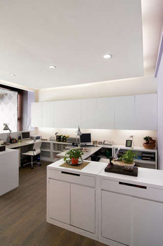 编辑推荐:环顾办公区域的安排,以大量的白作为主要基调,透过间接光源的俐落安排,柜体于线面的处理上,不做过多的修饰,还予空间最和谐与协调的表情。