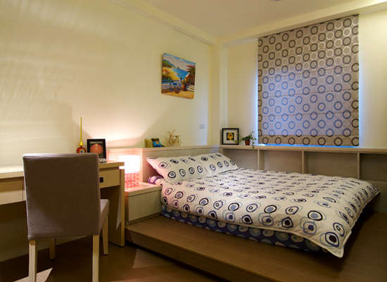 编辑推荐:由于小孩房本身空间不大,为了让使用功能增加、视觉放大,床板及床头以木作设计为主。