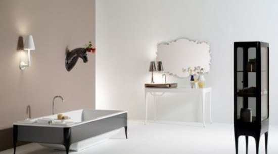 复古的黑白照片似的滤镜视觉效果,这种风格的浴室就好像是用PHOTOSHOP做了去色处理一样,成为那种古老的黑白照片的回忆,用复古的呈现方式表达现代化浴室,让沐浴之所有了回忆的浓香。