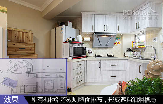 设计点子二:厨房沿不规则墙面排列橱柜