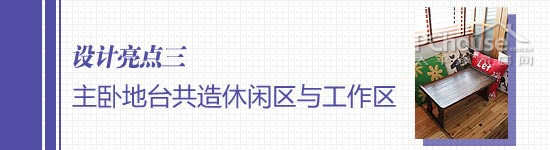空间利用:设计师帮JOJO把阳台纳入室内使用,增大了主卧的空间感。阳台处打造了一个木制小地台,什么抱枕,茶几之类的休闲用品一样也没少。