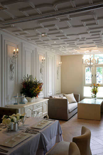 编辑点评:淬炼出简约法式线条,简约的法式纹理像似濂漪般扩散,漫覆于天花板、喷砂玻璃中。