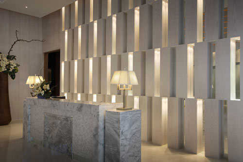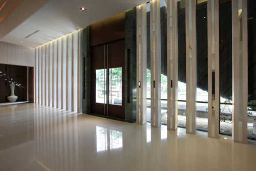 【太平洋家居网 设计频道】回流的空间动线由户外藉由压缩缝隙间引流入室内旋即释放,将人顿时抽离原有繁乱都市中,刻意挑高空间尺度,呈现大厅空间静谧之空间气势,空间动线安排也以回流为安排方式让人流回流于空间中,达到设计上人与空间对话的自由度。