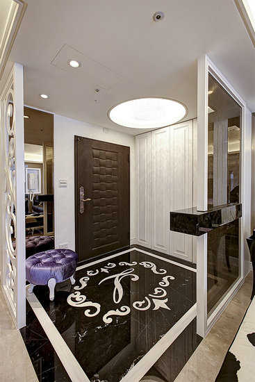 编辑点评:地坪拼花是姓氏的代表字母,转化为奢华尊贵的图腾。