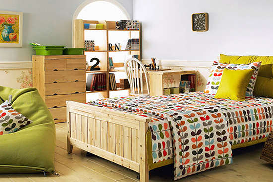 原木制品通常给人清新、自然、亲切的感觉,是很多家庭都喜爱装修材料。儿童房使用了大量的原木材料,从地板到架子床,从桌椅到窗户,都有原木材料的存在。