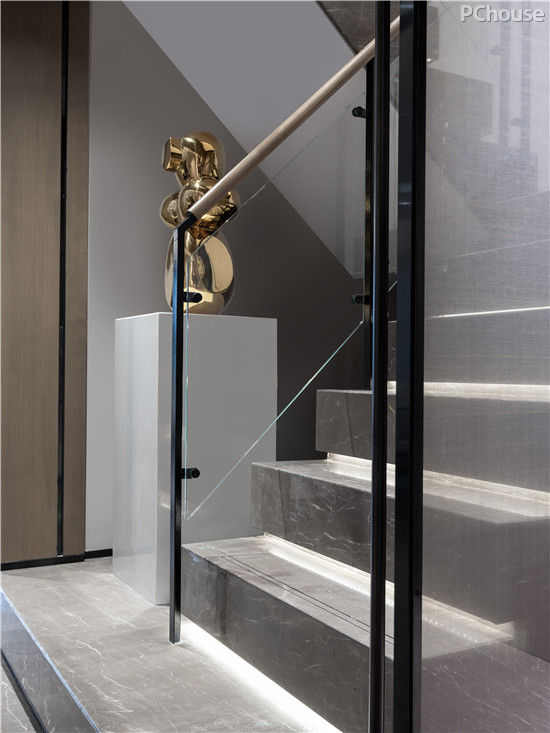 楼梯区是链接一二层空间纽带,它将生活格调层层铺开,利落的线条伴随精致的细节充盈其中,表达精致的空间诉求。带来一丝的暖意和高雅,串联起空间的情感主线。垫脚的阶石,却写着人间最美的情意。