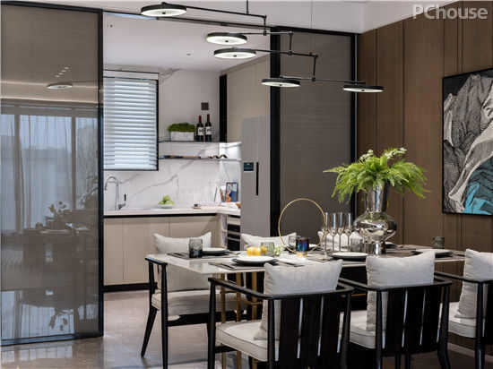 人创造了空间,空间反哺于人,餐厅区通过两扇玻璃门将光线引入室内,同事也将仪式感端上餐桌,营造舒适的用餐气氛,舒畅人的心灵。
