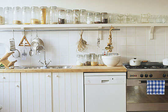 可移动夹缝置物架占地面积小,容纳多,而且重复利用率高,不仅可以用在厨房。缺点是一定要接触地面。