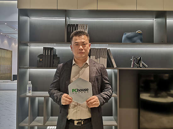 屈凡军在建博会梦天家居展厅现场接受了PChouse记者采访